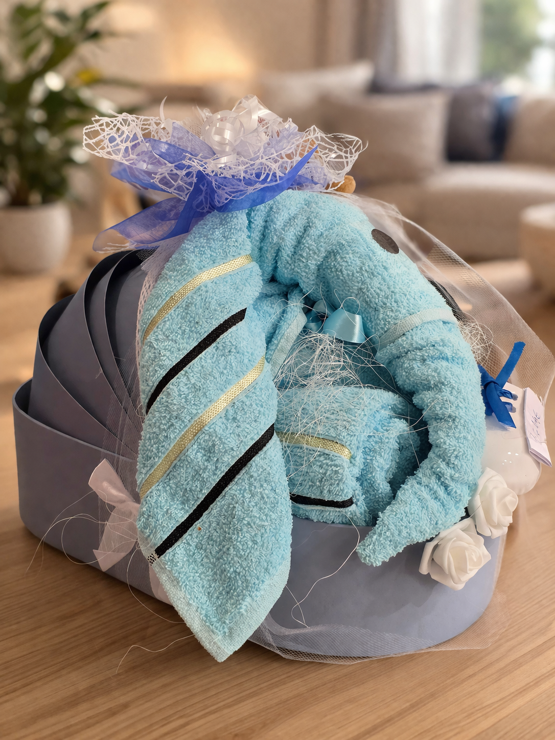 Ovaj prekrasni poklon set dolazi u ukrasnoj kutiji u obliku kolijevke, pažljivo je aranžiran, dekoriran i potpuno spreman za darivanje. Idealan je kao trajna uspomena na jedan od najvažnijih dana u životu djeteta.