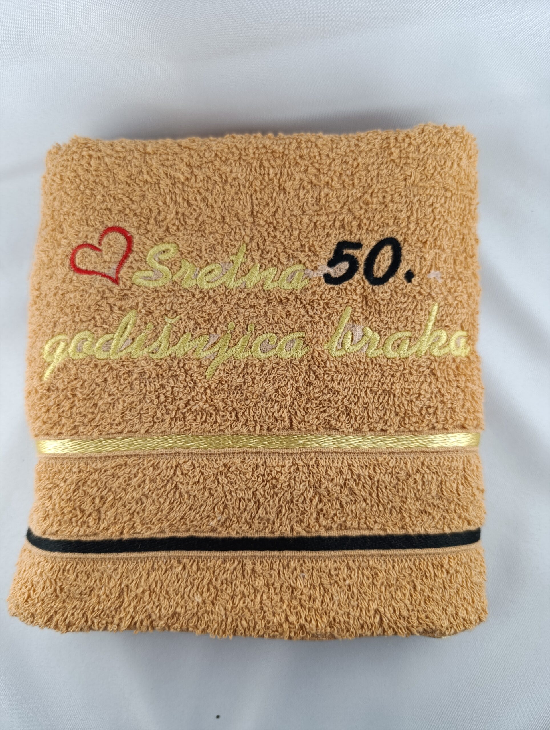 Obilježite posebnu godišnjicu braka s luksuznim ručnikom za sretnu godišnjicu braka. Ovaj personalizirani ručnik savršen je poklon za parove koji slave svoju ljubav i zajedničke godine. Izrađen od visokokvalitetnih materijala, nudi izuzetnu mekoću i udobnost.