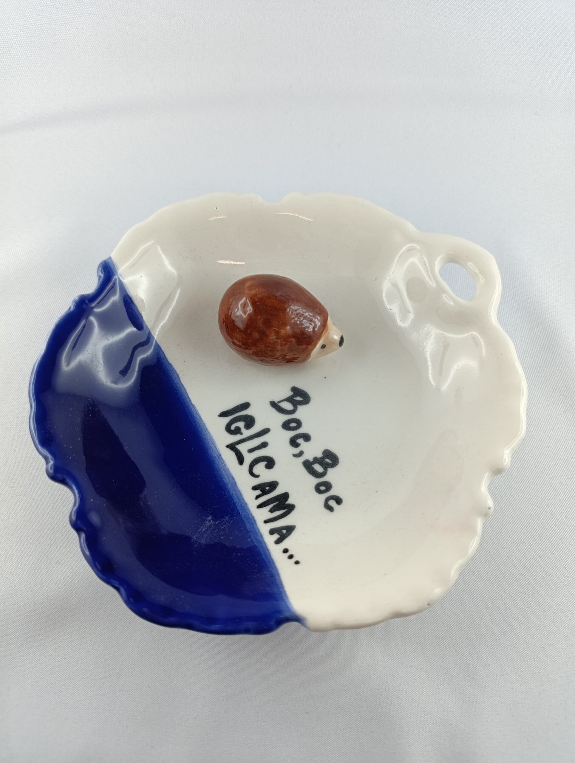 Ova šarmantna keramička zdjelica sa motivom ježića i rustikalnim barok-stilom unosi toplinu i prirodni šarm u svaki dom. Idealna za serviranje grickalica, voća ili kao stalak za sitne predmete. Ručni rad i kvalitetna glazura daju joj dugotrajnost i autentičan izgled. Savršena za poklon ili kao dekorativni detalj u interijeru.